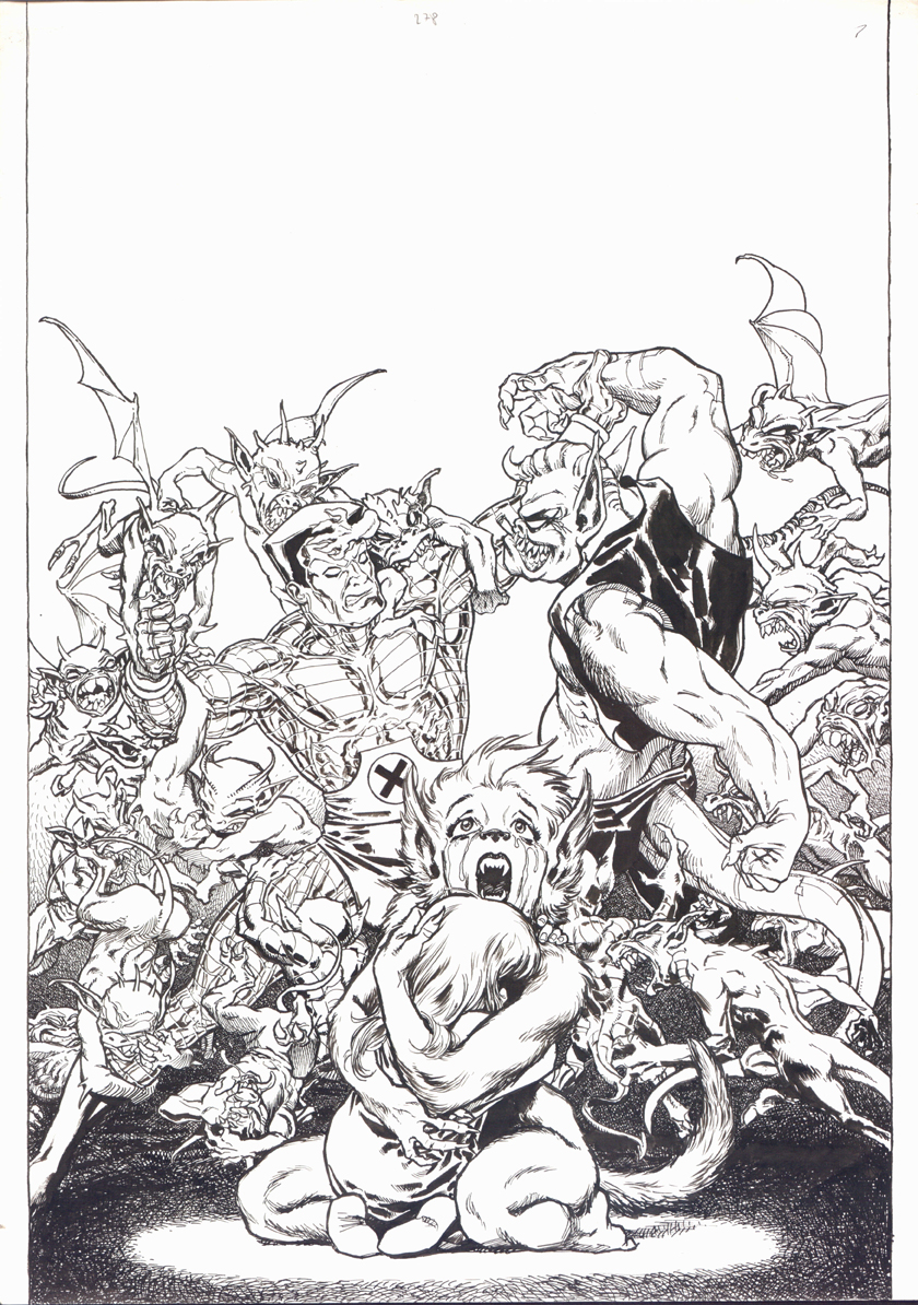 Algo más moderno. Una página de The Psycho de Dan Brereton. Es francamente grande. Los textos están en una hoja de papel vegetal aparte. Es curioso ver cómo el trabajo de Brereton era mucho menos acabado entonces... Me encantó esta serie en su momento. Se han subastado varias páginas en los últimos meses y la verdad es que los precios eran ridículos.